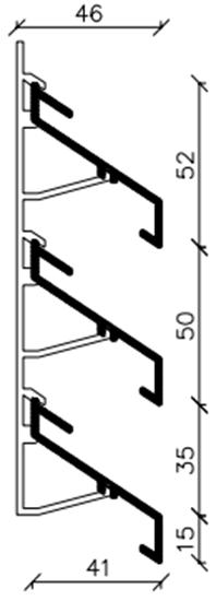 · Afmeting Lengte = 6000mm breedte = 52mm · Bouwdiepte 46 mm/41 mm · Dragerafstand 800mm – 1200mm · Kader met of zonder kader leverbaar · Bescherming tegen vogels Aluminium mazenafmeting 7x7mm · Bescherming tegen insekten Roestvrij staal mazenafmeting 1,4x1,4mm · Oppervlakte Alu ruw